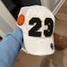 Personalize it with your child's number, and choose from a variety of vibrant hat colors to match your team or personal style. The side of the hat is adorned with a fun basketball patch, adding a sporty touch. The number patches come in red, black, or white with a glittered gold background, making your custom design stand out even more.