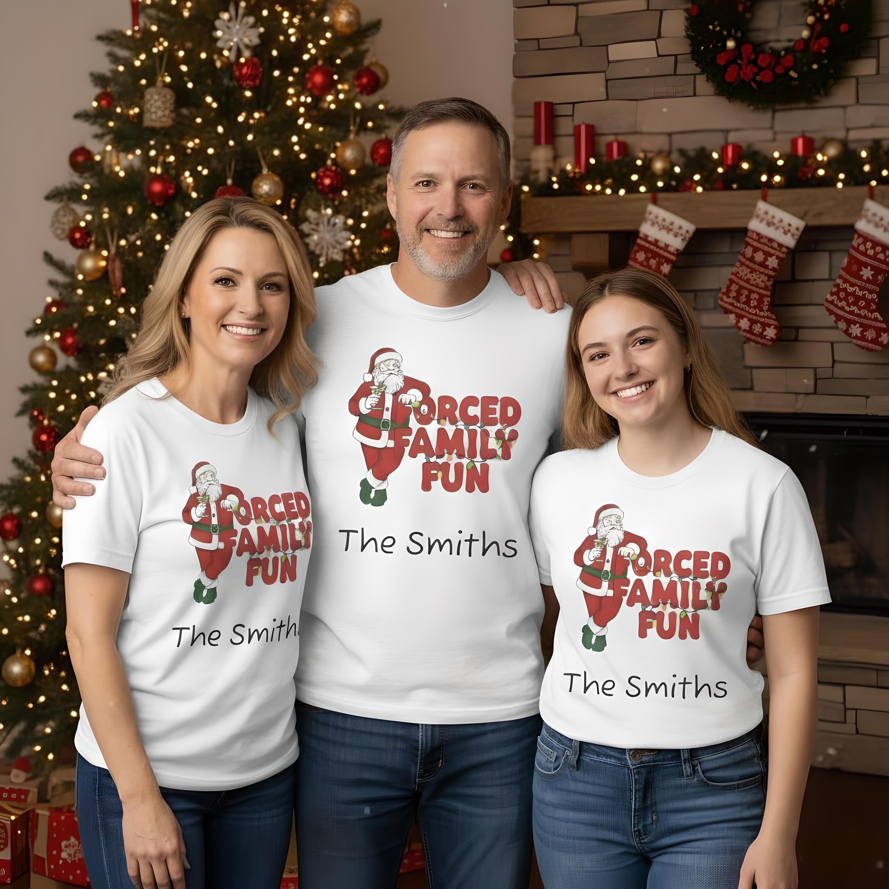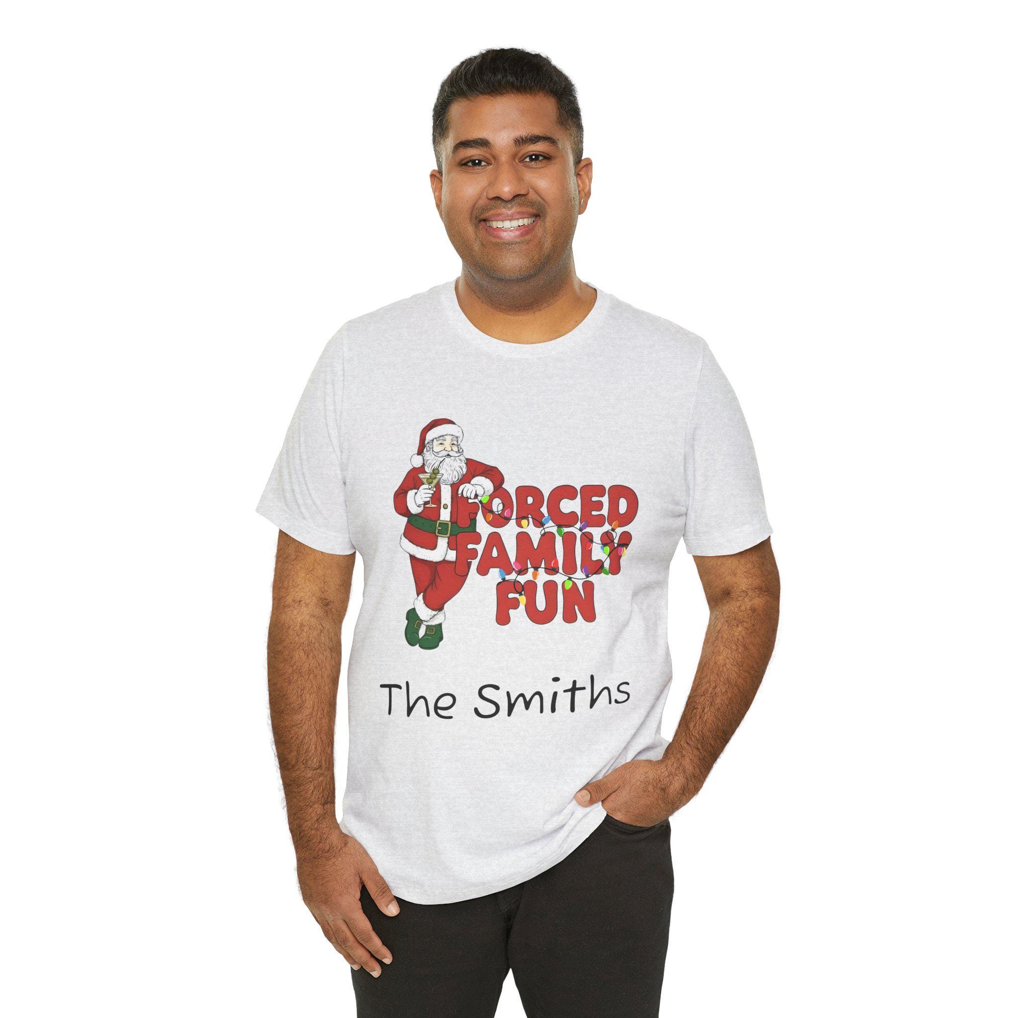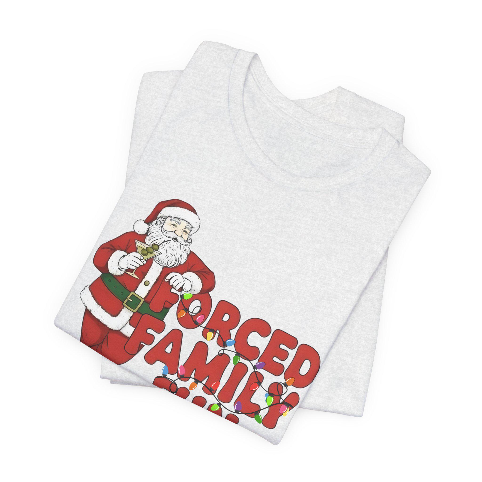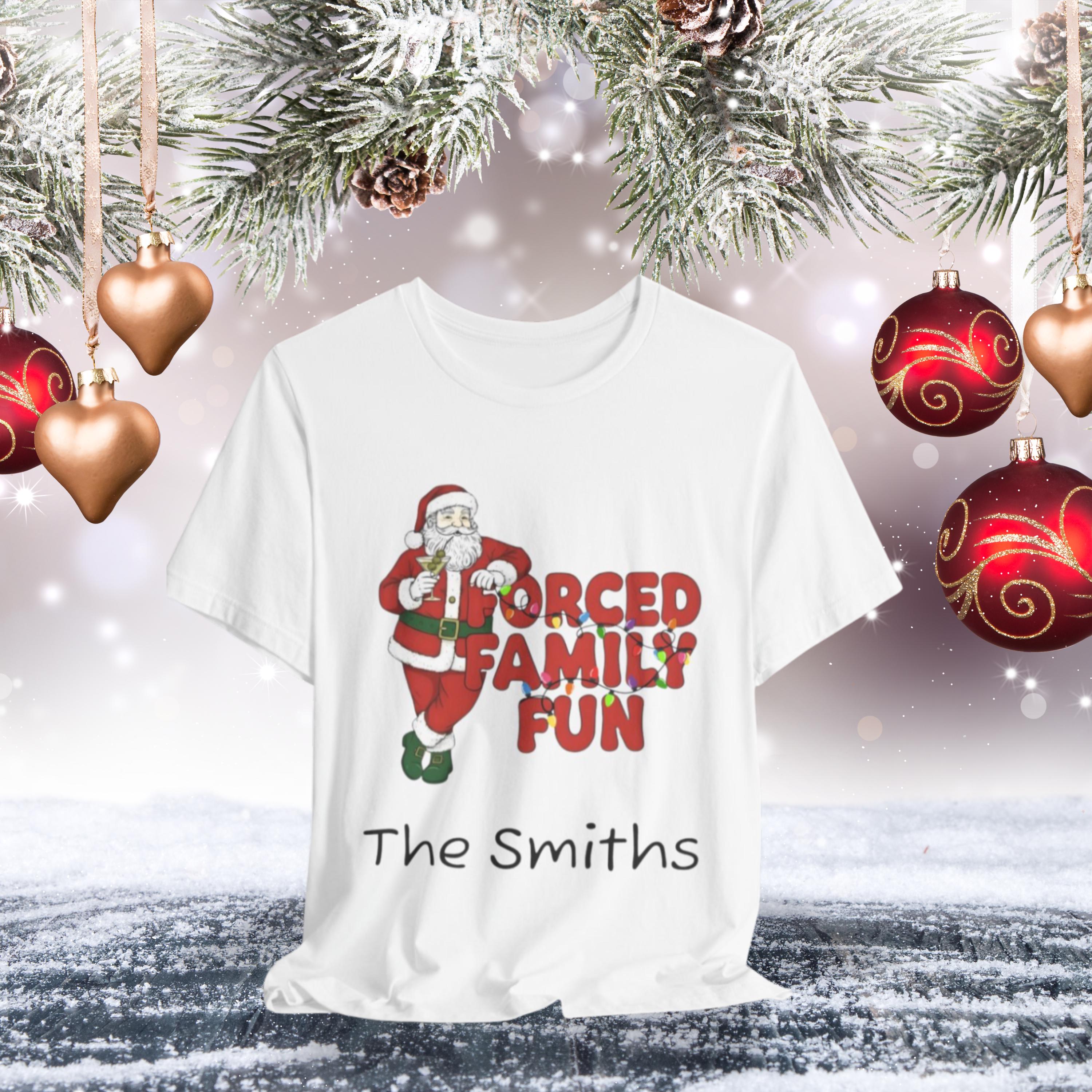 Celebrate the holiday season with this charming Unisex Jersey Short Sleeve Tee, designed to bring joy and laughter to your festive gatherings. Featuring a lighthearted 'Forced Family Fun' design, this tee sets a playful tone for family get-togethers, holiday parties, and casual outings. Perfect for all ages, it strikes the right balance between comfort and style, making it an ideal choice for those who appreciate both fun and functionality in their wardrobe. This tee is perfect for anyone looking to add a touch of humor to their holiday attire, making it an excellent gift for friends and family. Great for Christmas, family reunions, and holiday celebrations, this t-shirt embodies the spirit of togetherness and festivity, ensuring you stand out in cheerful style!