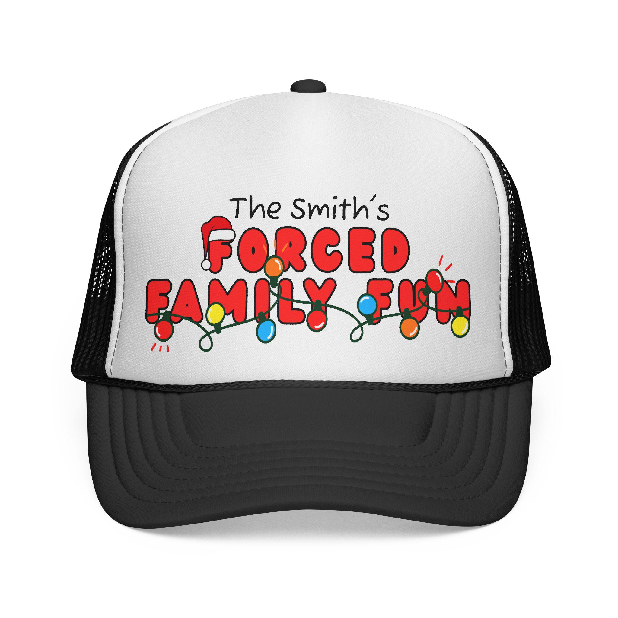 This Christmas-themed trucker cap with the phrase 'forced Family Fun' is perfect for adding a touch of humor to your holiday wardrobe. It's ideal for adults looking to spice up their festive outfits and bring a bit of fun to family gatherings or holiday parties.