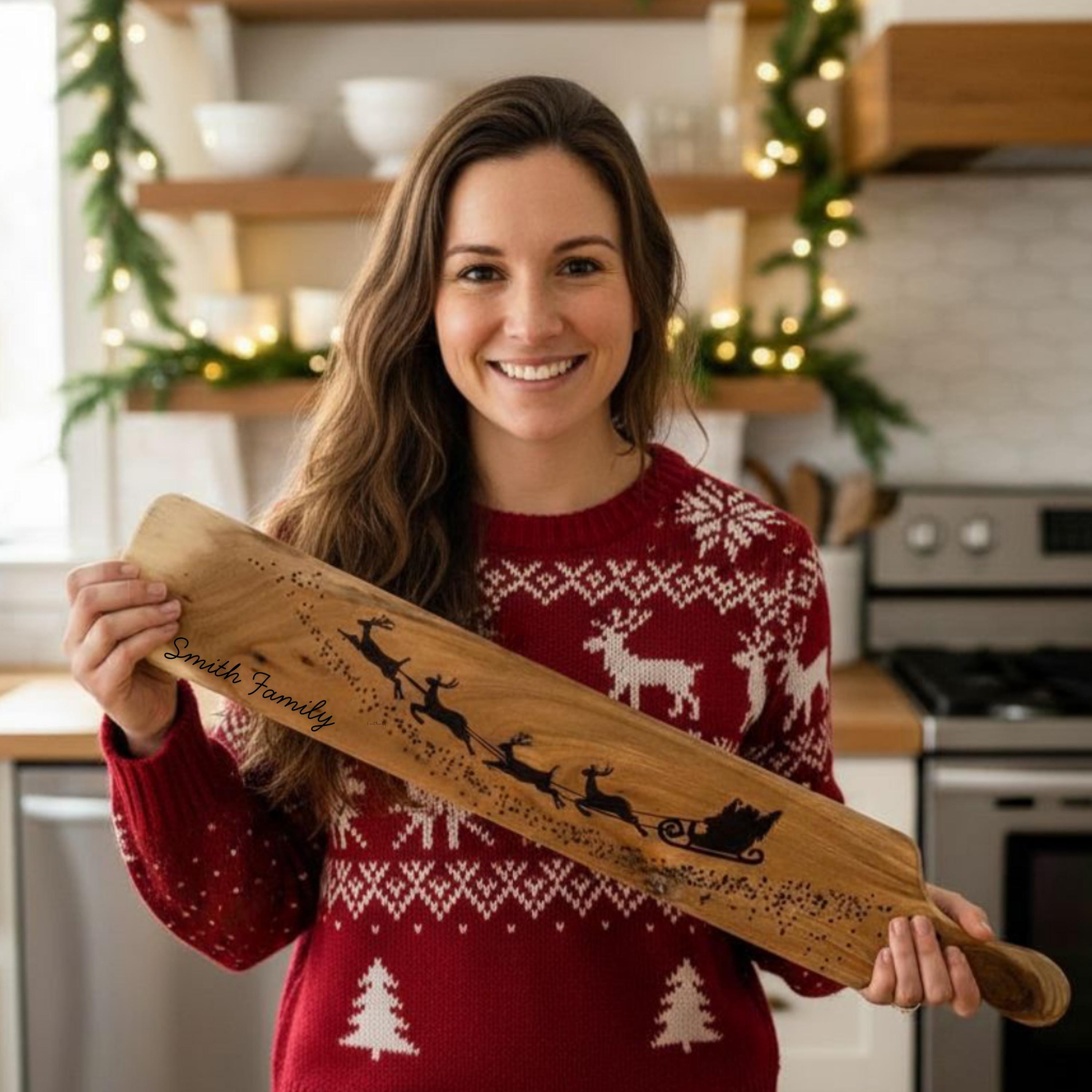 Handcrafted with care, each board showcases a detailed engraved design of Santa and his reindeer flying across the night sky. This large serving board is ideal for charcuterie, snacks, or desserts — and can be personalized with a family name, couple’s name, or holiday message for a truly one-of-a-kind keepsake.
