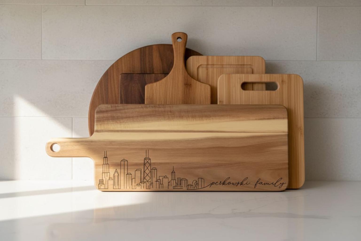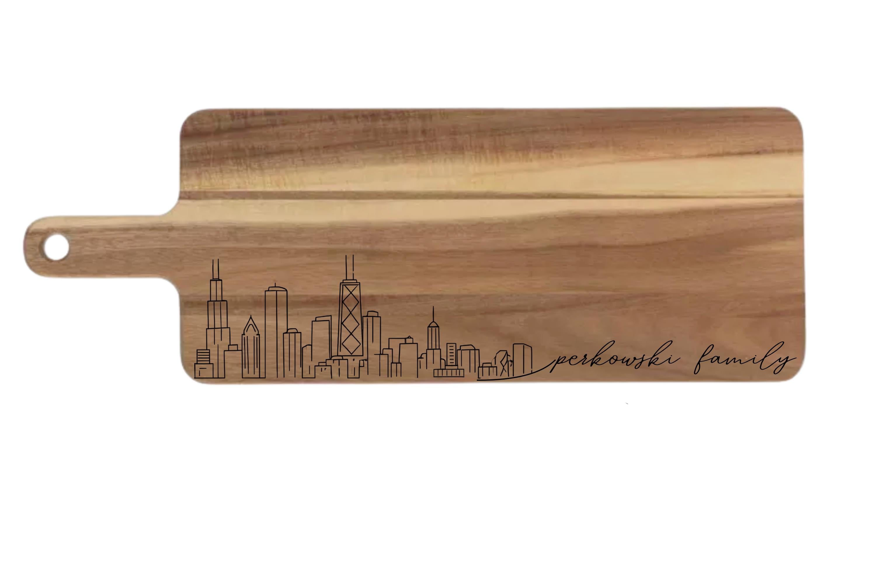 Celebrate special places and meaningful moments with a Personalized City Skyline Cutting Board, custom engraved just for you. Whether it’s a first home, forever home, or favorite city, this beautifully crafted board turns an address, name, or custom text into a timeless keepsake.